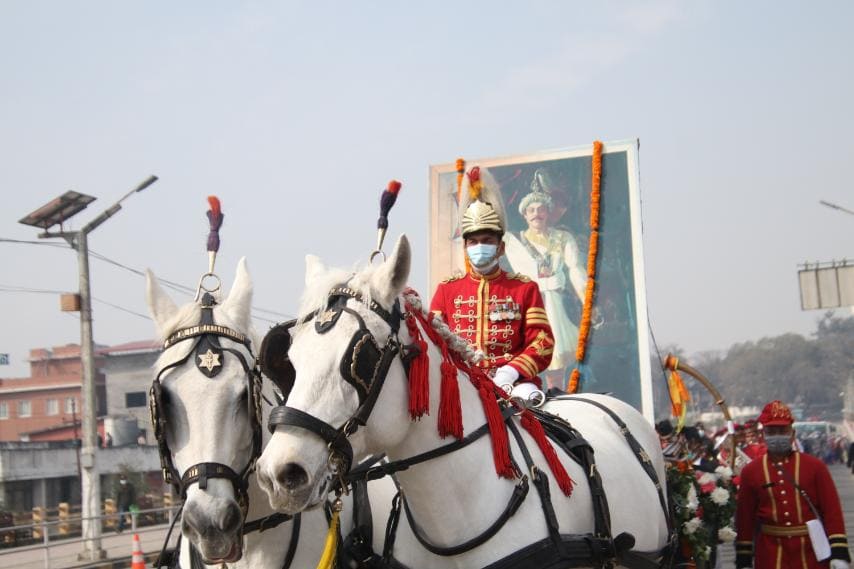 यसअघि कमलादीस्थित प्रज्ञा प्रतिष्ठानबाट सांस्कृतिक झाँकीसहित शोभायात्रा राजधानीको विभिन्न भाग परिक्रमा गरी सिंहदरबारको पश्चिम मूलढोकामा आइपुगेको थियो । शोभायात्राले राष्ट्रनिर्माताको सालिकमा पनि परिक्रमा गरेको थियो ।