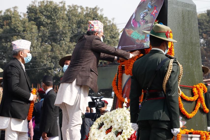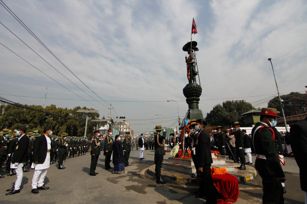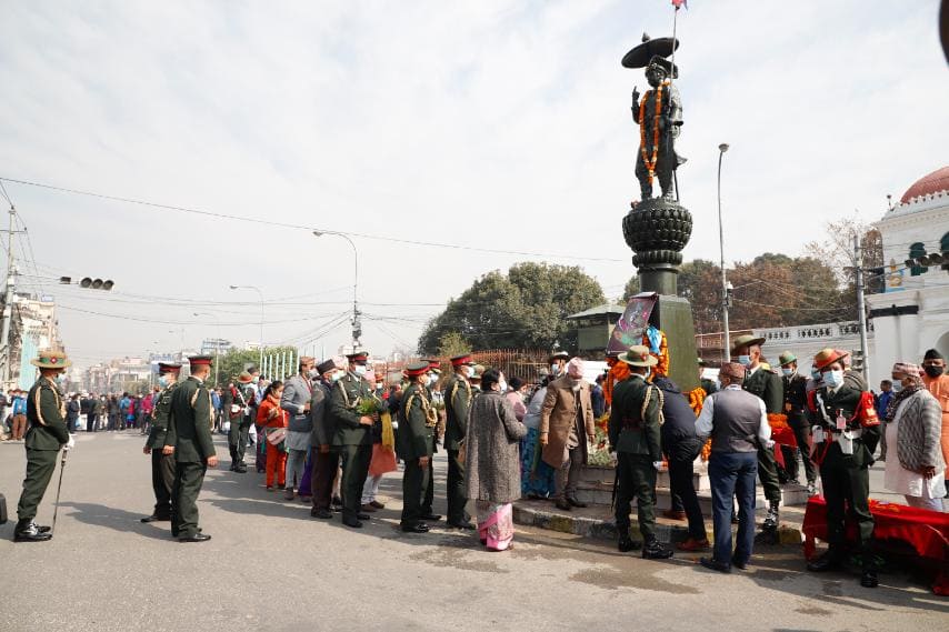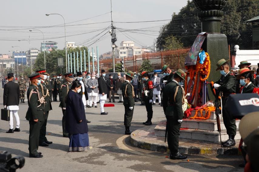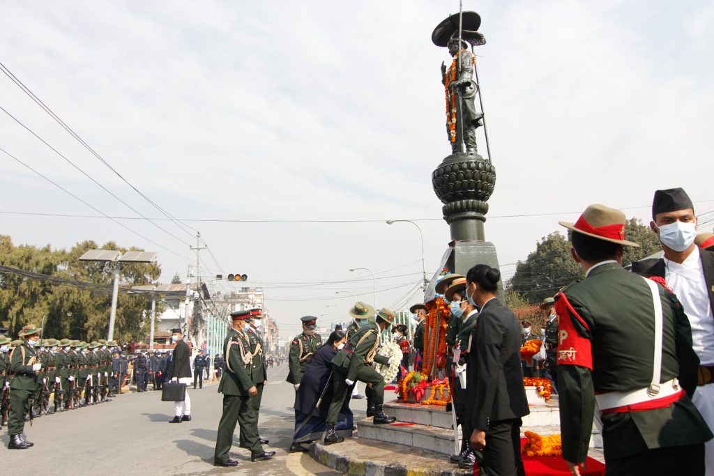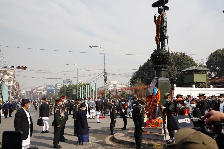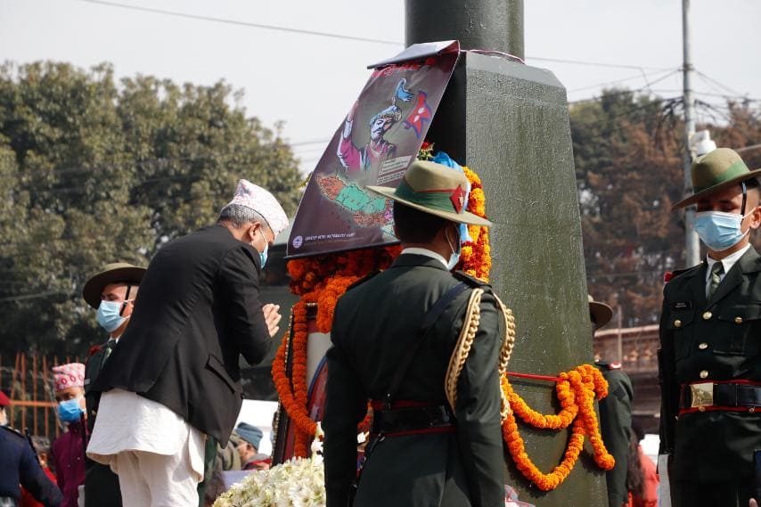 काठमाडाैँ । राष्ट्रपति विद्यादेवी भण्डारीले पृथ्वीजयन्तीको अवसरमा मंगलबार पृथ्वीनारायण शाहको शालिकमा माल्यार्पण गरेकी छन् ।