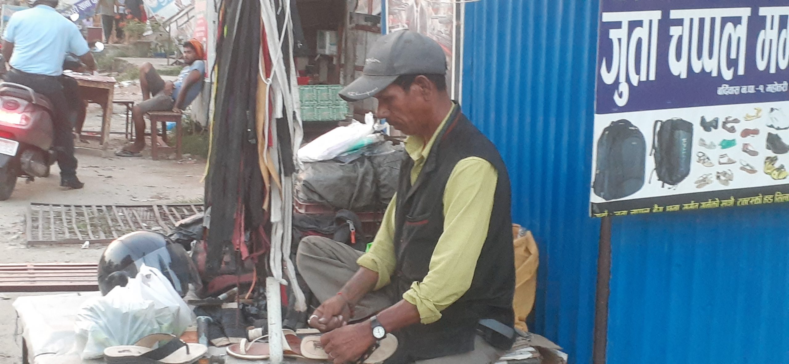 पुराना, मक्किएका, च्यातिएका जुत्ता पालिस गरेर टिलिक्क टल्काउनु उनको दैनिकी पेसा हो । उनलाई चुनावी माहोलले अझै छोएको छैन ।