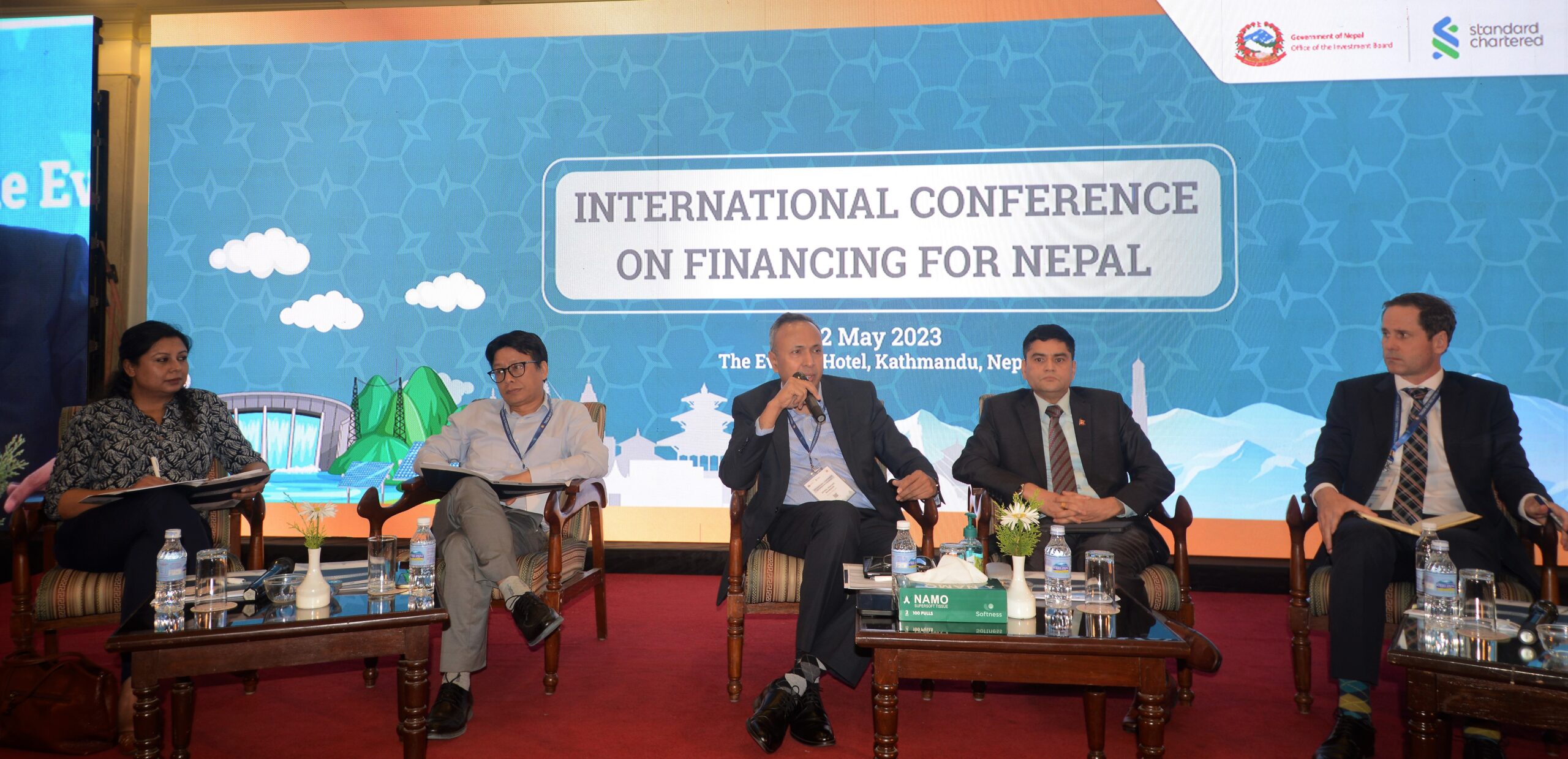 लगानी बोर्डको कार्यालय र स्ट्यान्डर्ड चार्टर्ड बैंकको आयोजनमा काठमाडौँमा सुरु भएको ‘नेपालका लागि वित्तीय लगानीसम्बन्धी अन्तर्राष्ट्रिय सम्मेलन, २०२३’को पहिलो सत्र ‘वित्तीय स्रोतको परिचालन र प्रत्यक्ष विदेशी लगानी’मा बोल्ने विज्ञले सरकारले लगानी भित्र्याउनका लागि नीतिगत सुधारका साथै सरकारको सकारात्मक धारणा बनाउनुपर्नेमा जोड दिएका छन ।