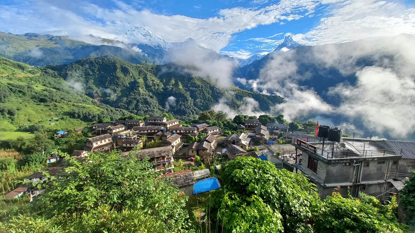 कास्कीको पर्यटकीय गाउँ घान्द्रुकको भ्यु पोइन्टबाट देखिएको दृश्य । घान्द्रुक देश–विदेशमा परिचित पर्यटकीयस्थल हो । यहाँ दिनहुँजसो ठूलो संख्यामा पर्यटकहरु आउने गरेका छन् । यहाँको सुन्दरता र मौलिक कला, सँस्कृति अध्ययन–अनुसन्धानका लागि विदेशी पर्यटक आउने गरेका छन् । तस्बीर : जमुना वर्षा शर्मा / रासस
