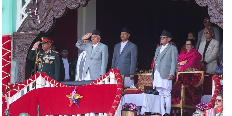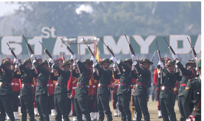 टुँडिखेलमा आयोजित समारोहमा राष्ट्रपति रामचन्द्र पौडेलसहित उच्च पदस्थ अधिकारीहरुले समेत सहभागि जनाएका छन् । नेपाली सेनाले आज सेना दिवस भव्यताका साथ मनाएको छ । सैनिक मञ्चमा आयोजित समारोहमा परेड (शस्त्राभ्यास) तथा तोप बढाइँ, कवाज, प्यारासुटलगात पदर्शनहरु गरिएको थियो ।
