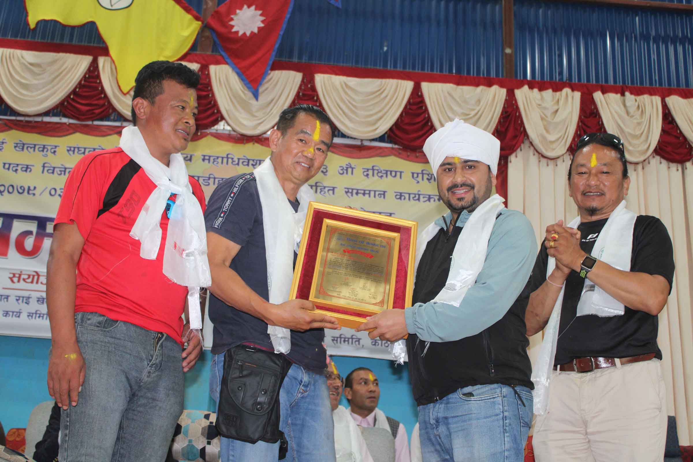पत्रकारिताको माध्यमबाट जिल्लाको समग्र खेलकुद क्षेत्रको सुधार, विकास, बेथिति विरुद्ध एवं सुशासनको पक्षमा समाचार सम्प्रेषण गरेर पुर्याएको योगदानलाई प्रशंसा गर्दै सम्मान गरिएको किरात राई खेलकुद संघले जनाएको छ ।