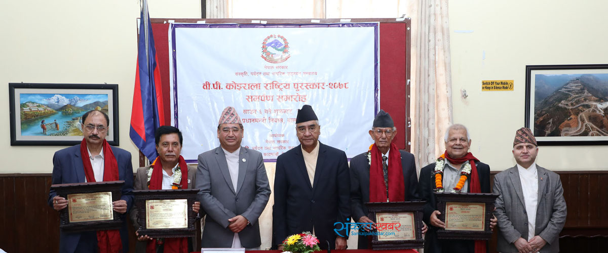 काठमाडौं । प्रधानमन्त्री शेरबहादुर देउवाले मुलुकमा राजनीतिक परिवर्तनसँगै सबै समुदायको साहित्य, कला, दर्शन, संस्कृतिको सन्तुलित विकास भएको बताएबम छन् । प्रधानमन्त्री निवास बालुवाटारमा आज आयोजित ‘वीपी कोइरालाई राष्ट्रिय पुरस्कार–२०७८’ समर्पण समारोहलाई सम्बोधन गर्दै उनले मुलुकको विभिन्न क्षेत्रमा योगदान पु¥याउने साधक एवं स्रष्टाको सम्मानमा राज्यले सहयोग गर्ने विश्वास दिलाए ।