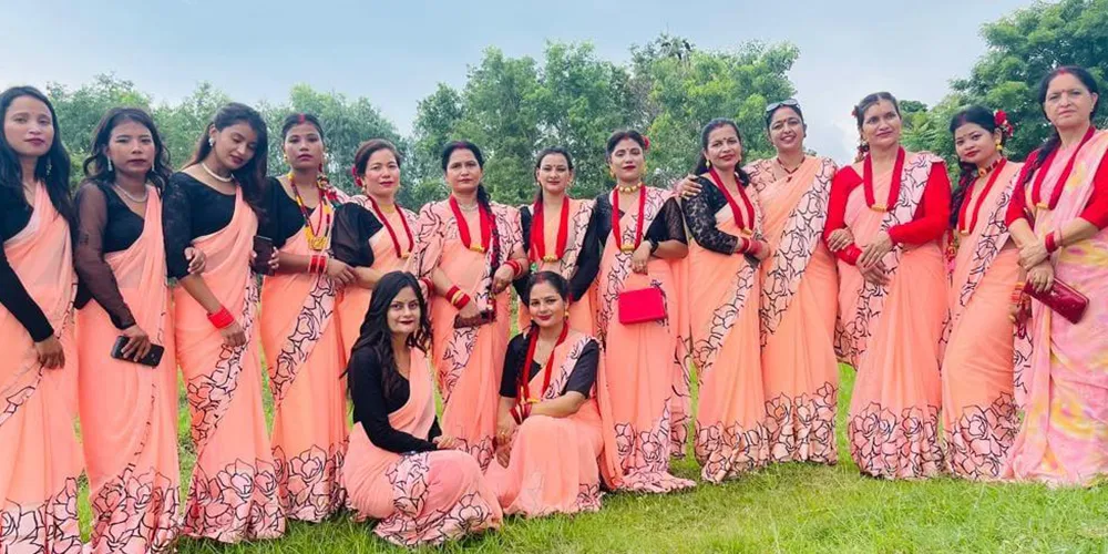 लम्कीचुहाकी सन्जु भण्डारी र उनका साथीले समेत दर खाने कार्यक्रममा एउटै खालको पहिरन लगाए । रमाइलोसँगै एउटै खालको साडी लगाउने चलन रहेको उनले सुनाइन् । ‘तीजमा गरिने अनावश्यक खर्च रोकौँ र रमाइलो गरौँ भनी सल्लाह ग¥यौँ,’ उनले भनिन्, ‘सबैको हैसियत एउटै देखियो । एकअर्कामा कमजोर अनुभूति कसैमा भएन ।’ विगतका तीजमा महिलाले महँगा साडी, सुनका गहना प्रदर्शन गर्थे । यस वर्ष भने त्यो क्रम घटठेको देखिएको छ ।
