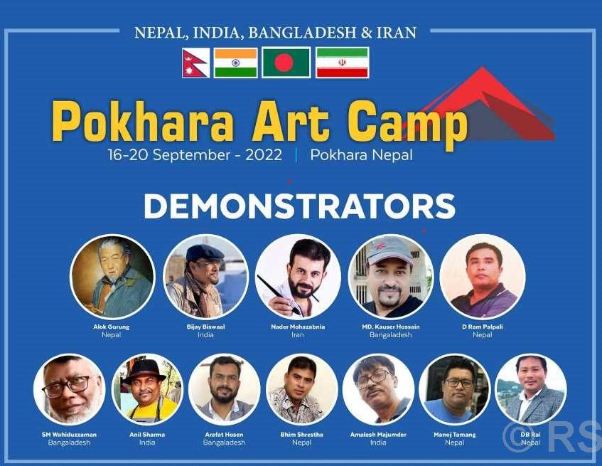 पोखरा । चार देशका कलाकारहरूको सहभागितामा पोखरामा बृहत् आर्ट क्याम्प आयोजना गरिने भएको छ । गण्डकी प्रज्ञा प्रतिष्ठानसँगको सहकार्यमा आजदेखि असोज ४ गतेसम्म हुने ‘पोखरा आर्ट क्याम्प’ मा नेपालसहित भारत, बङ्गलादेश र इरानका झण्डै एक सय कलाकारको सहभागिता रहने आयोजक अन्तर्राष्ट्रिय जलरङ समाज (आइडब्लुएस) नेपालले जनाएको छ ।