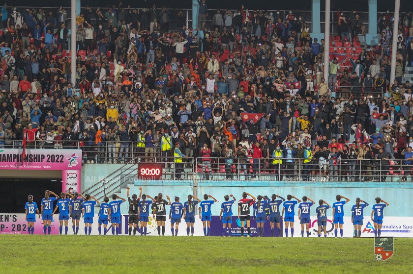 काठमाडौं । साफ महिला च्याम्पियनसिपको फाइनलमा नेपाल बंगलादेशसँग २-० ले पछि परेको छ । दशरथ रंगशालामा जारी फाइनल खेलको १४ औं मिनेटमा पहिलो गोल गरेको बंगलादेशले ४२ औं मिनेटमा दोश्रो गोल थपेको हो ।