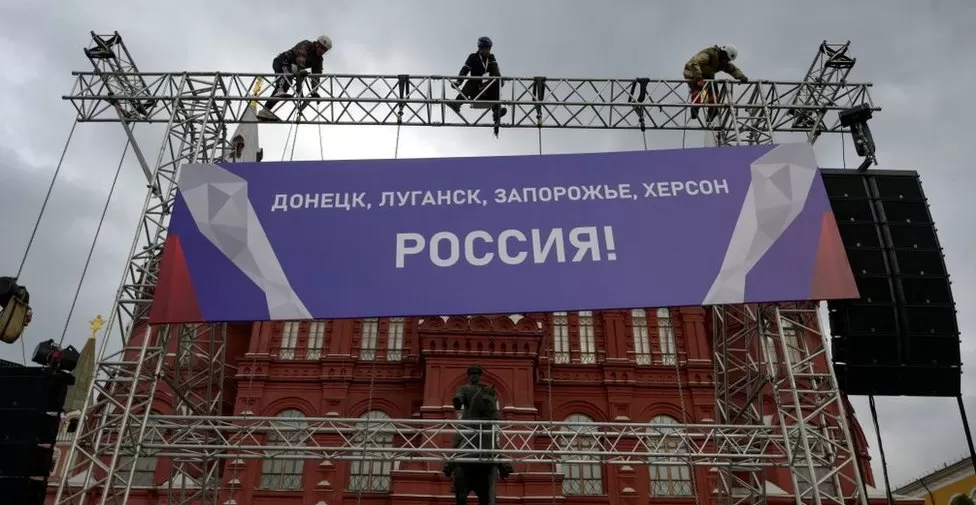 रुसी राष्ट्रपतिले शुक्रवार क्रेम्लिनमा मुख्य मन्तव्य दिनेछन् । मस्कोको रेड स्क्वेअरमा पहिले नै एउटा मञ्च तयार पारिएको छ । ती चारवटा क्षेत्रलाई रुसी भूभागको रूपमा घोषणा गर्ने बिलबोर्डहरू तयार छन् र साँझमा साङ्गीतिक कार्यक्रम पनि हुनेछ ।