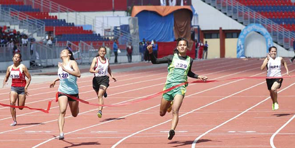 पोखरा । नवौँ राष्ट्रिय खेलकुद प्रतियोगिताअन्र्तत एथ्लेटिक्स बिधातर्फ सात स्वर्णपदकको छिनोफानो भएको छ । गण्डकी प्रदेशको पोखरा रङ्गशालामा आज सम्पन्न खेलअन्र्गत एक हजार पाँच सय मिटर दौडको पुरुषतर्फ मुकेश पाल र महिलामा फुलमती रानाले स्वर्ण पदक जितेका छन् ।