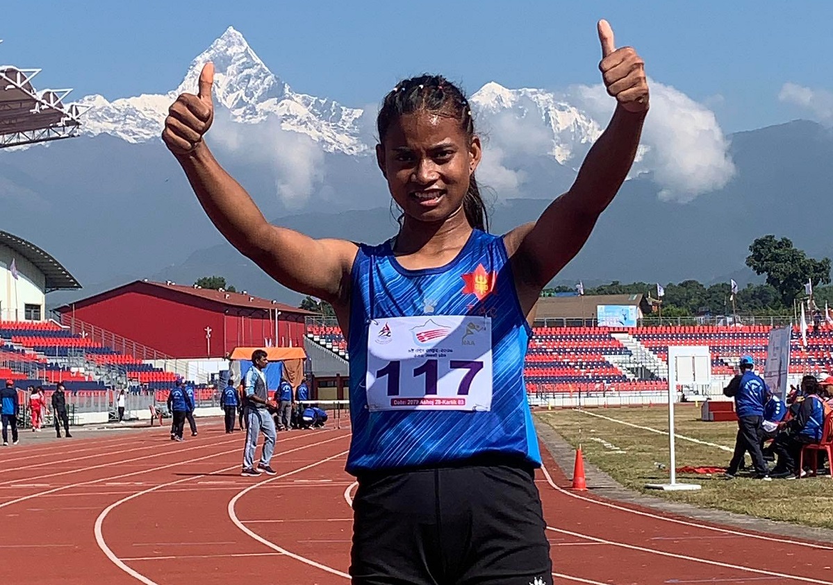 पोखरा । पोखरामा जारी नवौं राष्ट्रिय खेलकुदअन्तर्गत एथलेटिक्समा त्रिभुवन आर्मी क्लबले आइतबार दुई नयाँ कीर्तिमान कायम गरेको छ । पोखरा रंगशालामा भएको ४ सय मिटर महिला हडल्समा त्रिभुवन आर्मी क्लबकी जयरानी थारुले राष्ट्रिय कीर्तिमानसहित स्वर्ण पदक जितेकी छिन् ।