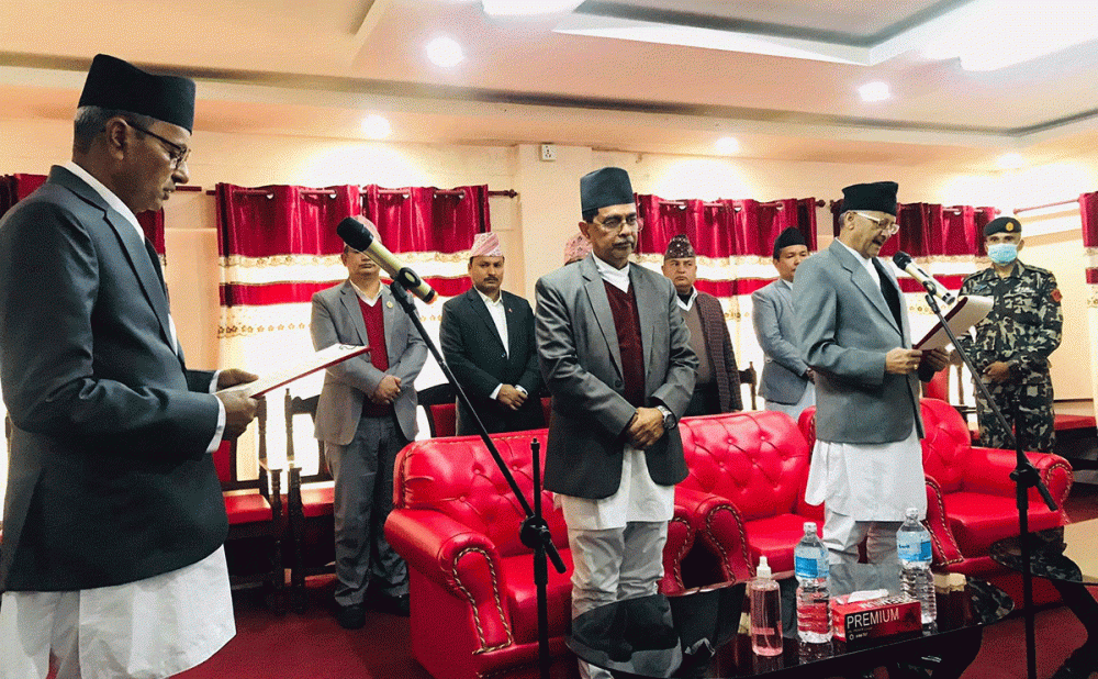 उनलाई प्रदेश प्रमुख यादवचन्द्र शर्माले शपथ गराएका थिए । उनले बाँकी सांसदलाई बिहीबार शपथग्रहण गराएर आगामी संसद अधिवेशनको सुरु गराउने छन्।