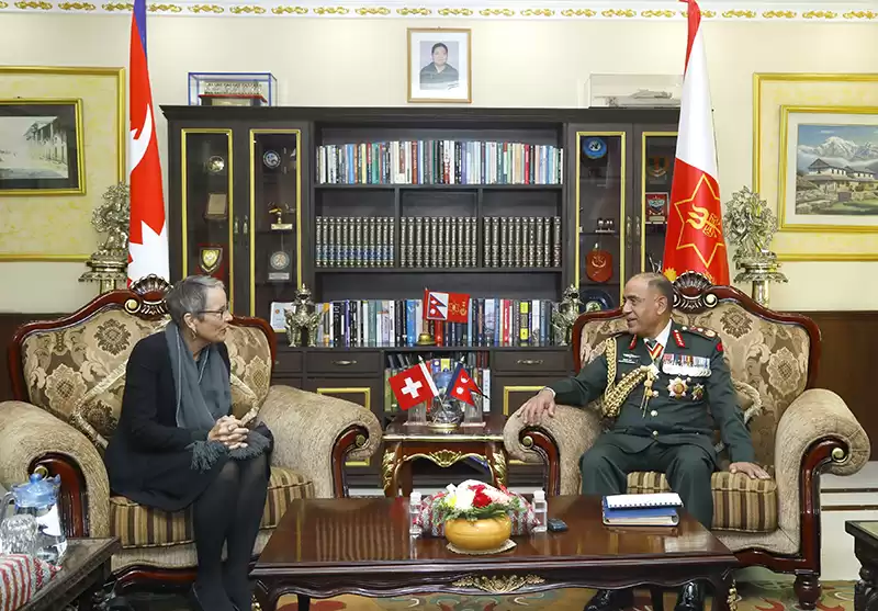 काठमाडौँ । प्रधानसेनापति प्रभुराम शर्मा र नेपालका लागि मित्रराष्ट्र स्वीजरल्याण्डकी राजदूत एलिसाबेथ भोन कापेल्लेरबीच भेटवार्ता भएको छ ।