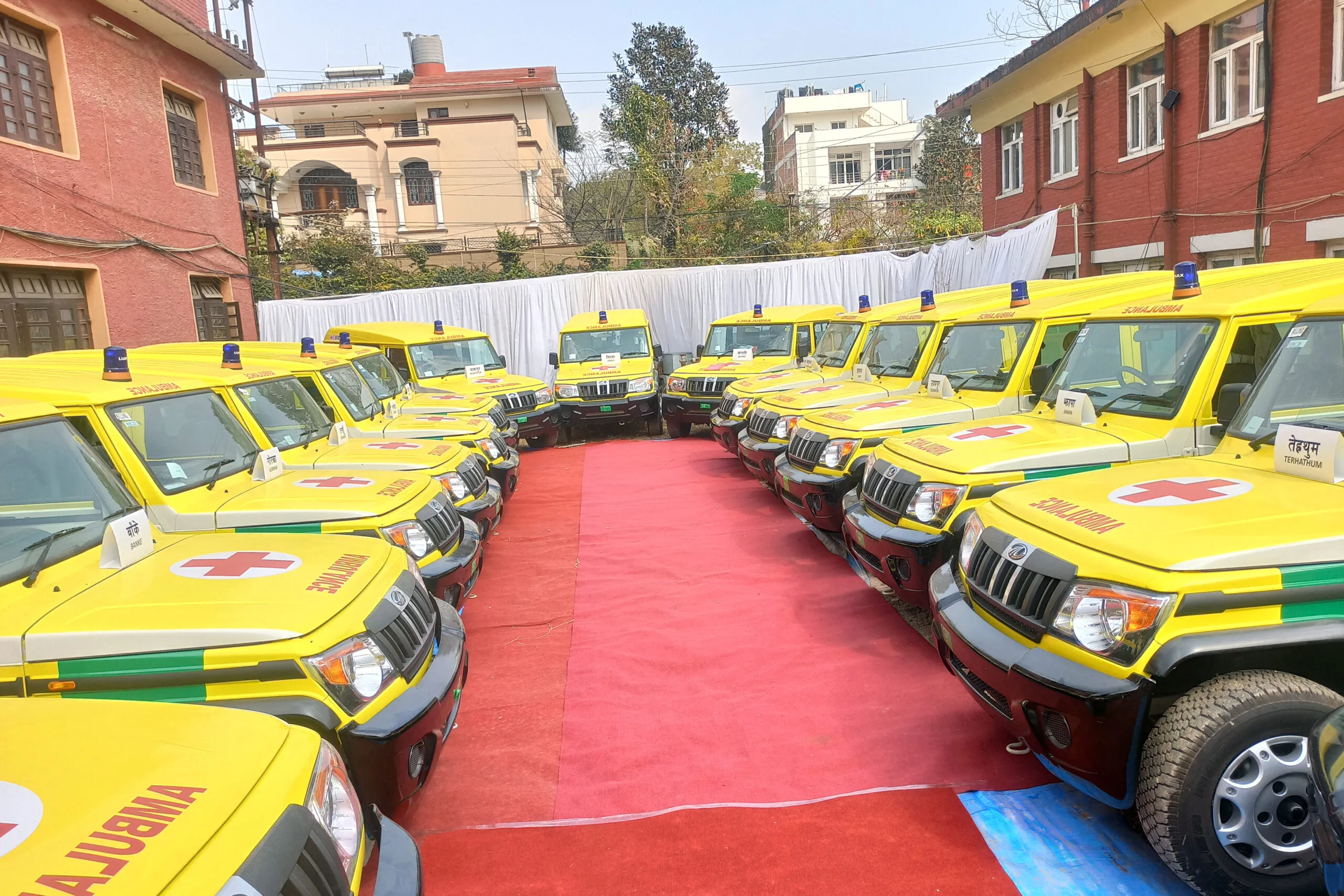 एम्बुलेन्स प्राप्त गर्नेमा इलाम, झापा, तेह्रथुम, सङ्खुवासभा, सप्तरी, उदयपुर, भक्तपुर, नुवाकोट, तनहुँ, गुल्मी, प्यूठान, सल्यान, सुर्खेत, दाङ, जाजरकोट, डोटी, मुगु, बझाङ, बैतडी, दार्चुला, कैलाली र कञ्चनपुर जिल्ला शाखा छन् । यस्तै बाँकेको सोनारी, बर्दियाको बारबर्दिया, भोजपुरको अन्नपूर्ण, गोरखाको मनकामना, कालीकोटको नरहरिनाथ, रोल्पाको घर्तीगाउँ, सिन्धुलीको ग्वालटार र सिरहाको मिर्चैया उपशाखाले पनि एम्बुलेन्स प्राप्त गरेका छन् ।