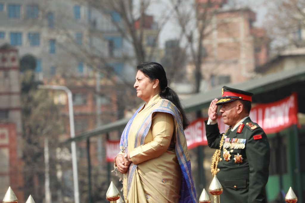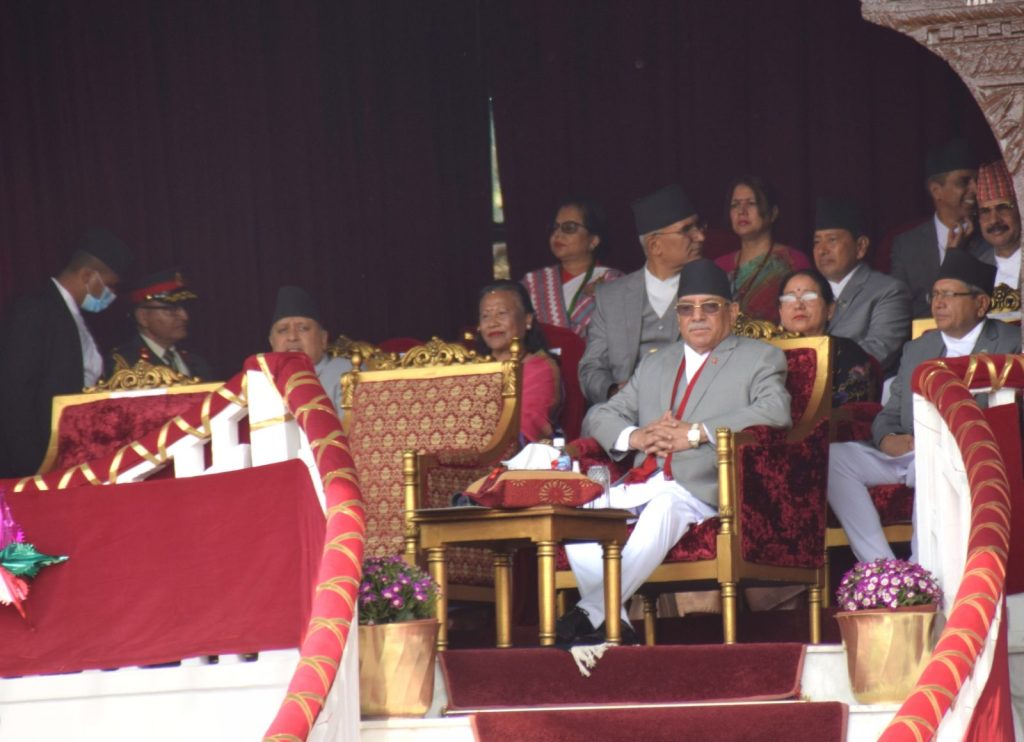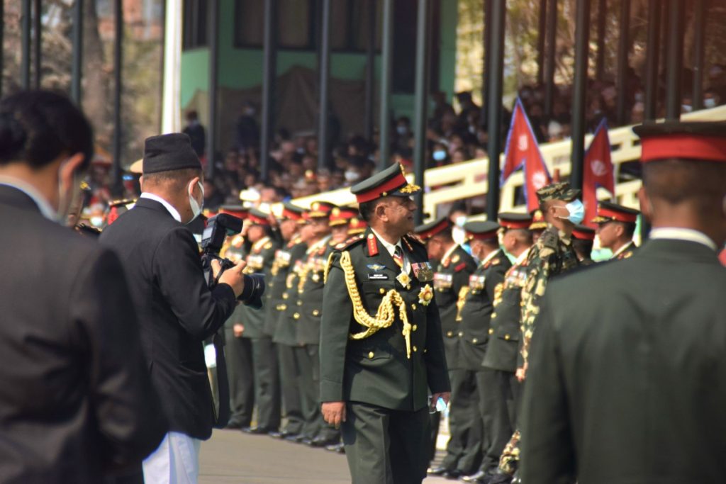 काठमाडौं । सेना दिवसको अवसरमा आज (शनिबार) नेपाली सेनाले काठमाडौंको टुंडिखेलमा विशेष कार्यक्रम आयोजना गरेको छ । कार्यक्रममा राष्ट्रपति विद्यादेवी भण्डारी र प्रधानमन्त्री पुष्पकमल दाहाल ‘प्रचण्ड’ लगायत उच्च पदस्थ व्यक्तिहरु सहभागी भएका छन् । कार्यक्रममा नेपाली सेनाले सैनिक कौशल प्रदर्शनी गरेको थियो ।