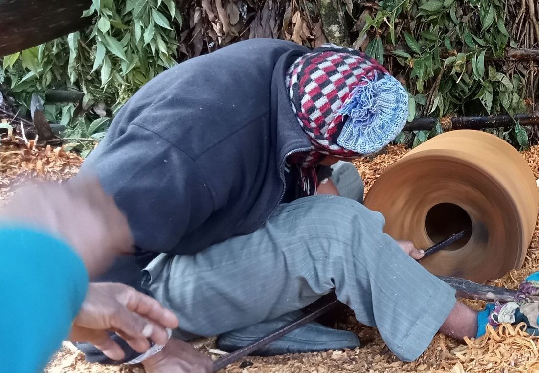 भोजपुर । काठको ठेकी बनाउने चुँदाराले श्रमअनुसारको ज्याला पाउन सकेका छैनन । लामो समयदेखि यो पेसा गरे पनि ठेकी कुँदेर जीवनयापन गर्न अप्ठ्यारो पर्ने गरेको उनीहरूको गुनासो छ । विगत वर्षमा धेरैले यो पेसा गर्दै आए पनि पछिल्लो समयमा भने घट्दै गएको छ । न्यून ज्याला, संरक्षणको अभाव तथा पुस्तान्तरण नहुँदा पेसा सङ्कटमा पर्दै गएको चुँदाराको भनाइ छ । यहाँ ठाउँअनुसार गाउँघरमा पाइने पँयले, दार, मौवा, कटहरलगायतका काठबाट स–साना आकारका गोलियालाई कुँदेर चुँदाराले काठका ठेकीसँगै भाँडाकुँडा बनाउने गर्दछन् । जसका लागि उनीहरुलाई निकै मेहनत पर्ने गर्दछ ।