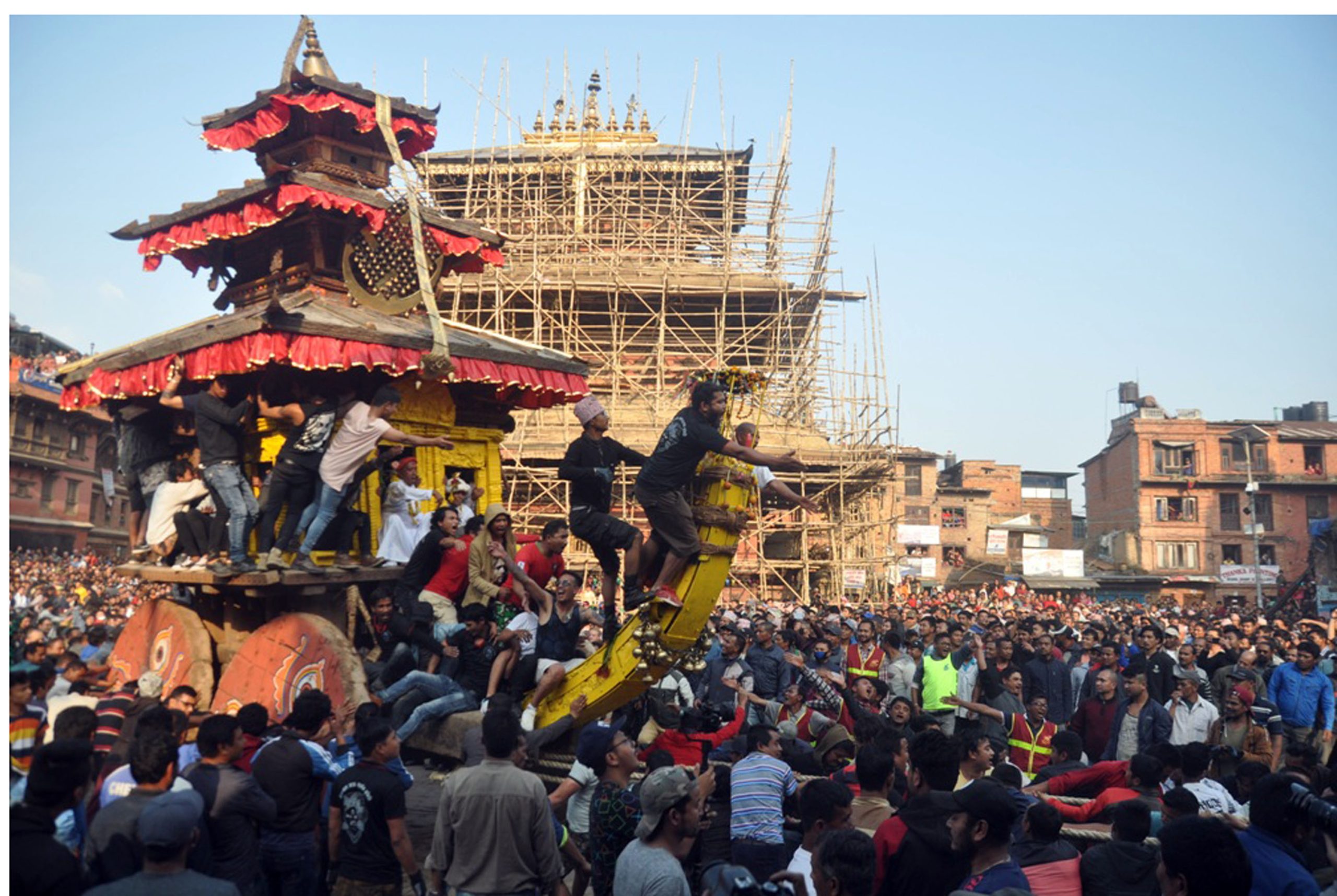 टौमढीस्थित पाँचतले मन्दिर प्राङ्गणमा एक महिना अगाडिदेखि रथ निर्माणका लागि बिभिन्न आकारका काठ तयार गर्ने, पाङ्ग्रा बनाउने, बिग्रिएका सामानको मर्मत गर्ने, बुट्टा बनाउने कार्य भइरहेको गुठी संस्थान भक्तपुरको प्रमुख खिमा वलीले जानकारी दिए ।