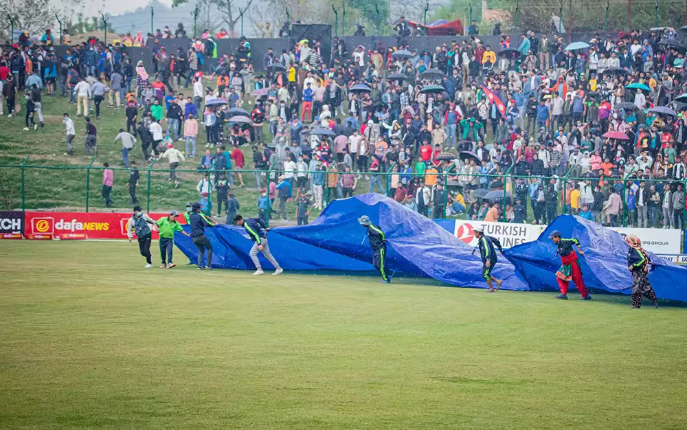 त्रिवि क्रिकेट मैदानमा १६ औँ ओभर सकिँदा रोकिएको खेल पुनः सुरु एको हो ।