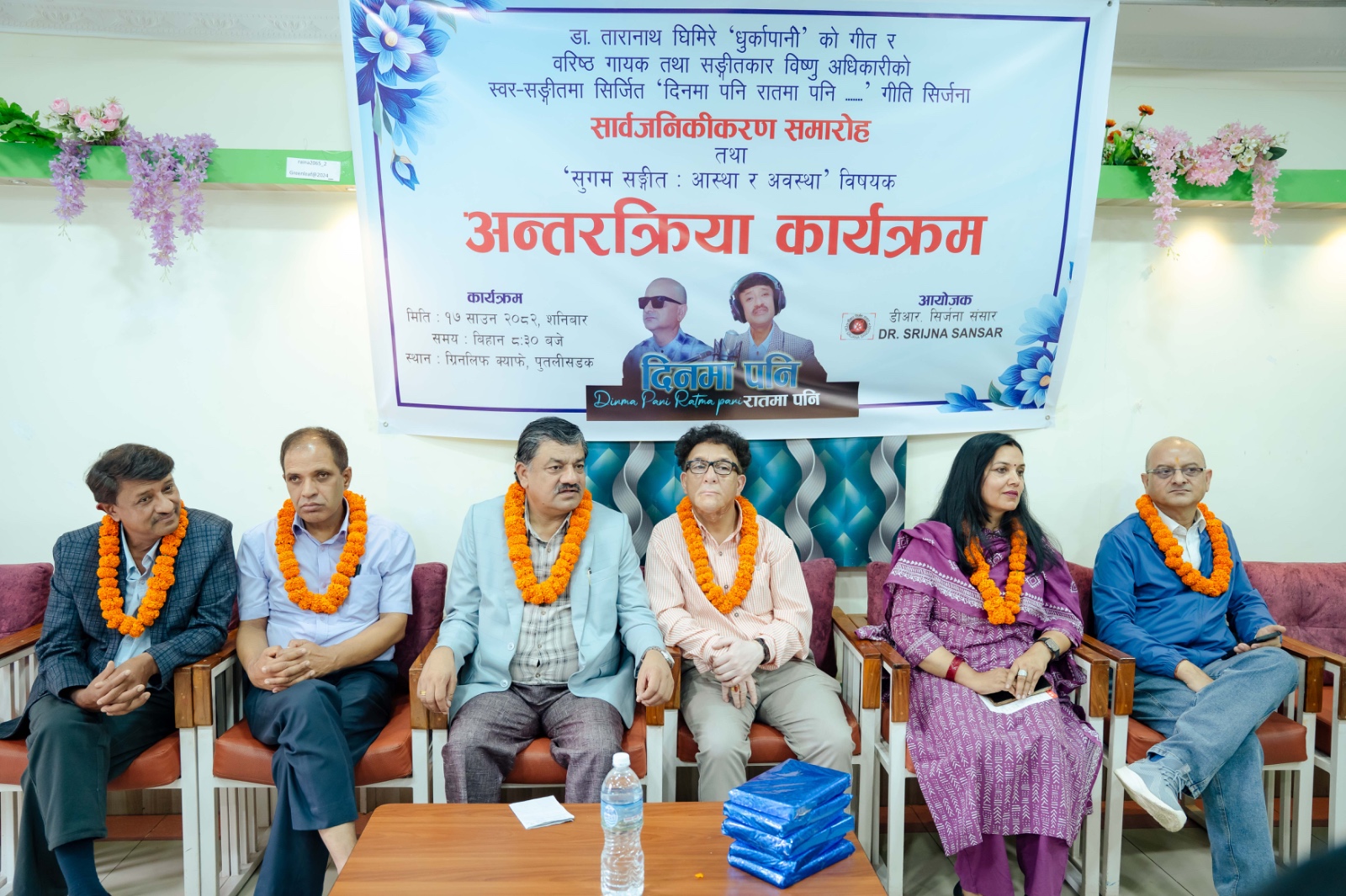 त्रिवि पाटन संयुक्त क्याम्पस राजनीतिशास्त्र विभागका सहप्राध्यापक गीतकार डा तारानाथ घिमिरे धुुर्कापानीले आफ्ना भावनालाई गीतमामार्फत लेखेको बताइन्। “प्रेम प्राप्तिपछि सकिन्छ, तर म प्राप्तिको कल्पनामा रमाउने सर्जक हुँ”, उनले भनिन्, “सिर्जना कतिबेला केस्तो अवस्थामा बन्छ थाहा हुँदैन।”