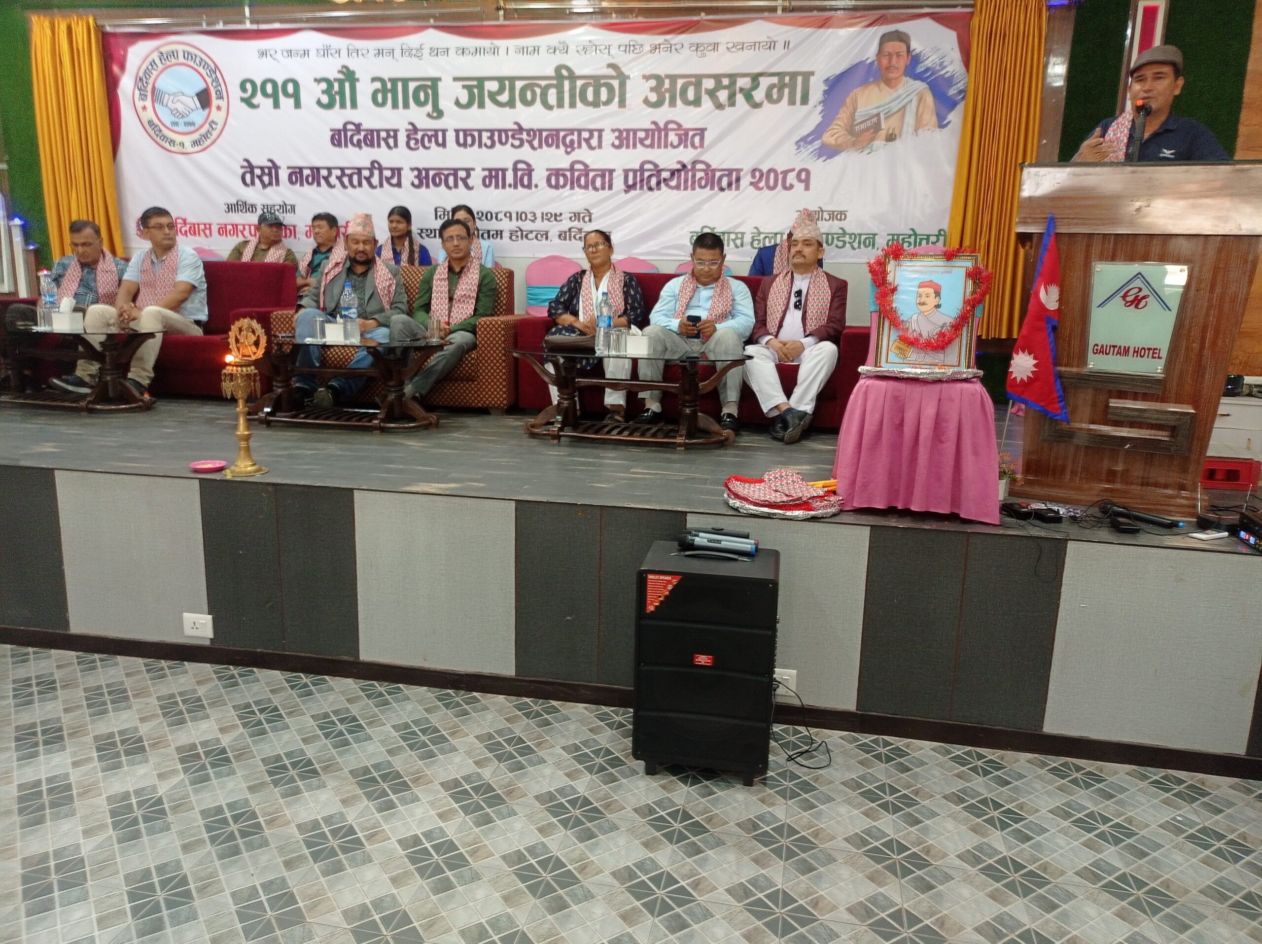 काठमाडौं । आदिकवि भानुभक्त आचार्यको दुई सय ११औँ जन्मजयन्तीका अवसरमा १३ जना छात्रछात्रा पुरस्कृत भएका छन् । महोत्तरीको बर्दिबासमा बर्दिबास हेल्प फाउण्डेशनले बर्दिबास नगरपालिकाको सहयोगमा शनिबार आयोजना गरेको तेस्रो नगरस्तरीय अन्तर मावि कविता प्रतियोगितामा उनीहरू पुरस्कृत भएका हुन् ।
