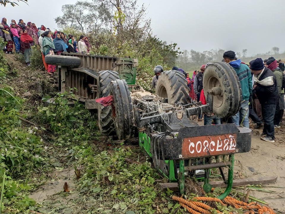 कपिलवस्तु । कपिलवस्तुको बुद्धभूमि नगरपालिका- ३ रनगाईमा ट्याक्टर पल्टिँदा दुई जनाको घटना स्थलमा मृत्यु भएको छ । लु ४ त २४०२ नम्बरको ट्याक्टर मगलबार बिहान ७ बजे दुर्घटना भएको थियो ।