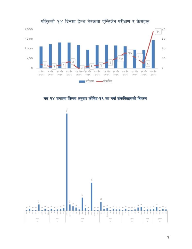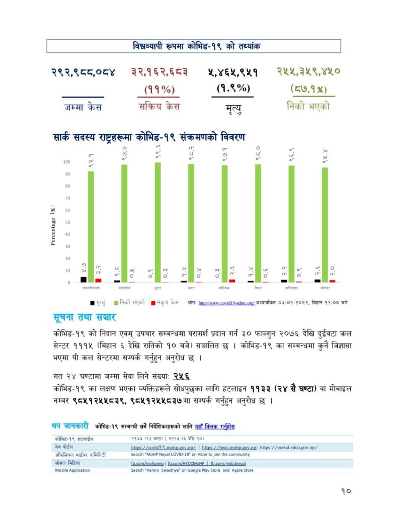 स्वास्थ्य तथा जनसंख्या मन्त्रालयका अनुसार यो अवधिमा २ सय ६३ जना संक्रमणमुक्त भएका छन् भने ३ जनाको मृत्यु भएको छ। सक्रिय संक्रमितको संख्या ५ हजार ९४ रहेको मन्त्रालयले जनाएको छ।