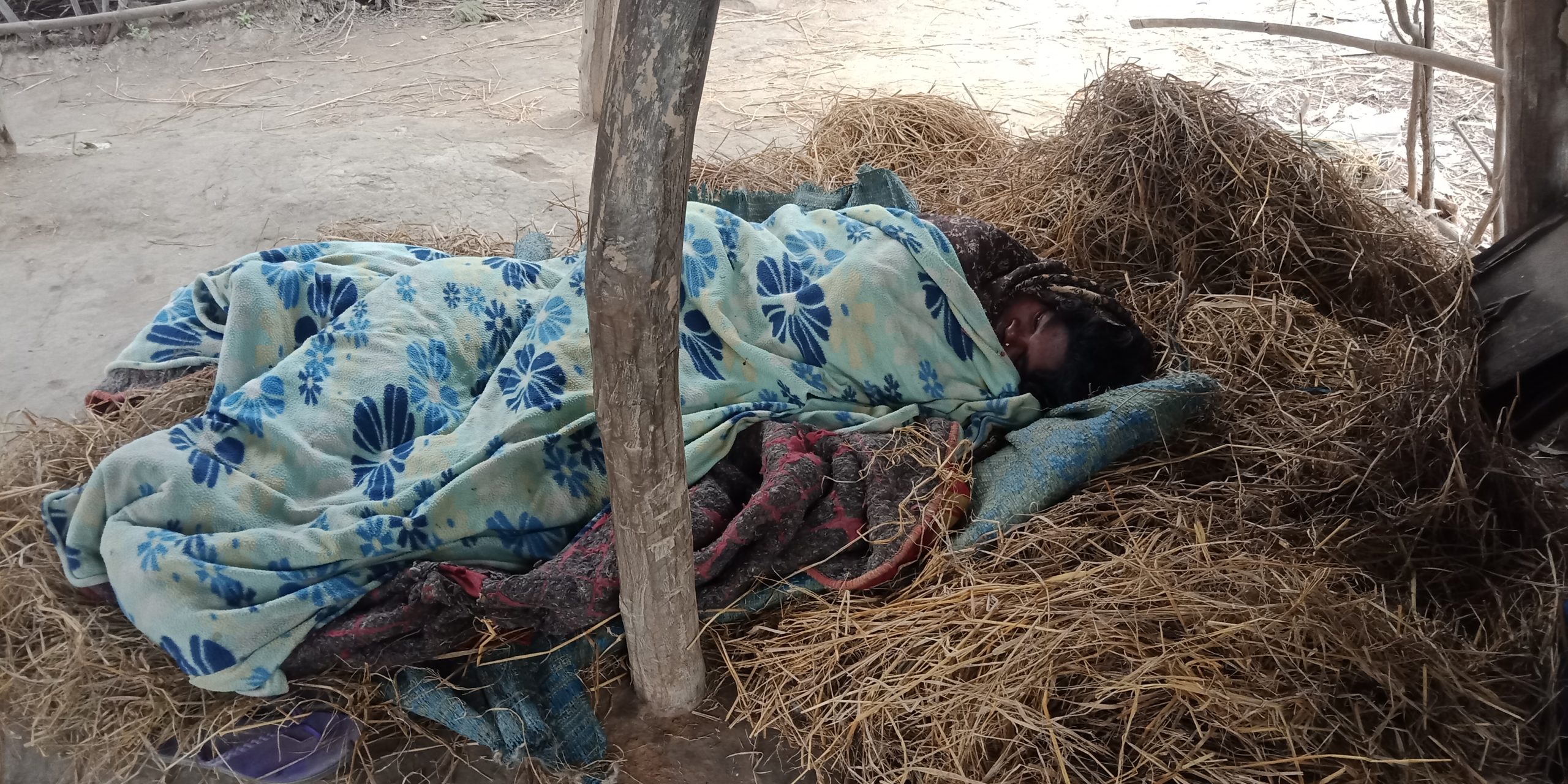 सिरहा।चार छोरा/छोरी र श्रीमतीसहित ६ जनाको परिवार रहेका शिवु सदाय खरले बारेको छाप्रोमा बस्छन् । मुस्किले चिसो शिरेटो छेक्ने छाप्रोभित्र उनीहरूको ओछ्यान चिसो भुइँमा पराल र ओड्ने पातला कपडाले मात्र रात बिताउनुपर्ने बाध्यता छन् । छोरा छोरी पनि चिसिएर आधी रातमै उठेपछि न्यानो बनाउने उपाय भनेकै आगो रहेको बताउँछन् ।