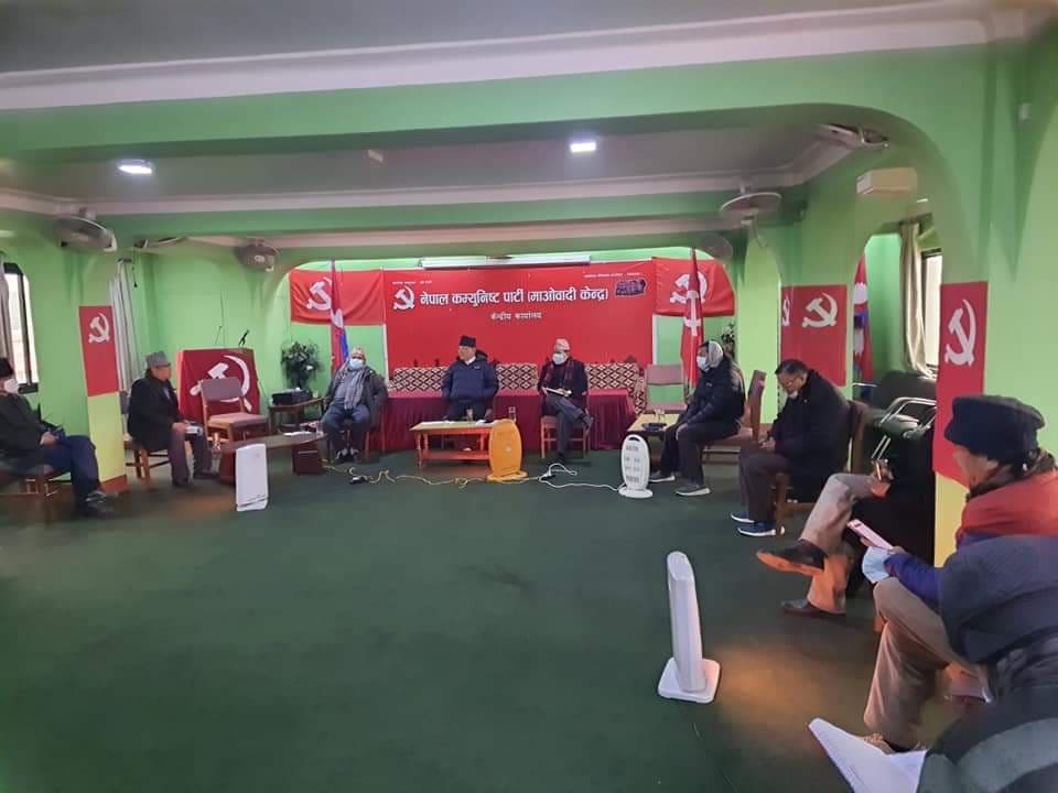 काठमाडौं।नेकपा (माओवादी केन्द्र) को बैठक बसिरहेको छ । अध्यक्ष पुष्पकमल दाहाल ‘प्रचण्ड’को अध्यक्षतामा निवर्तमान स्थायी समिति र आयोगका अध्यक्षहरूको बैठक पार्टी कार्यालय पेरिसडाँडामा बसेको हो ।