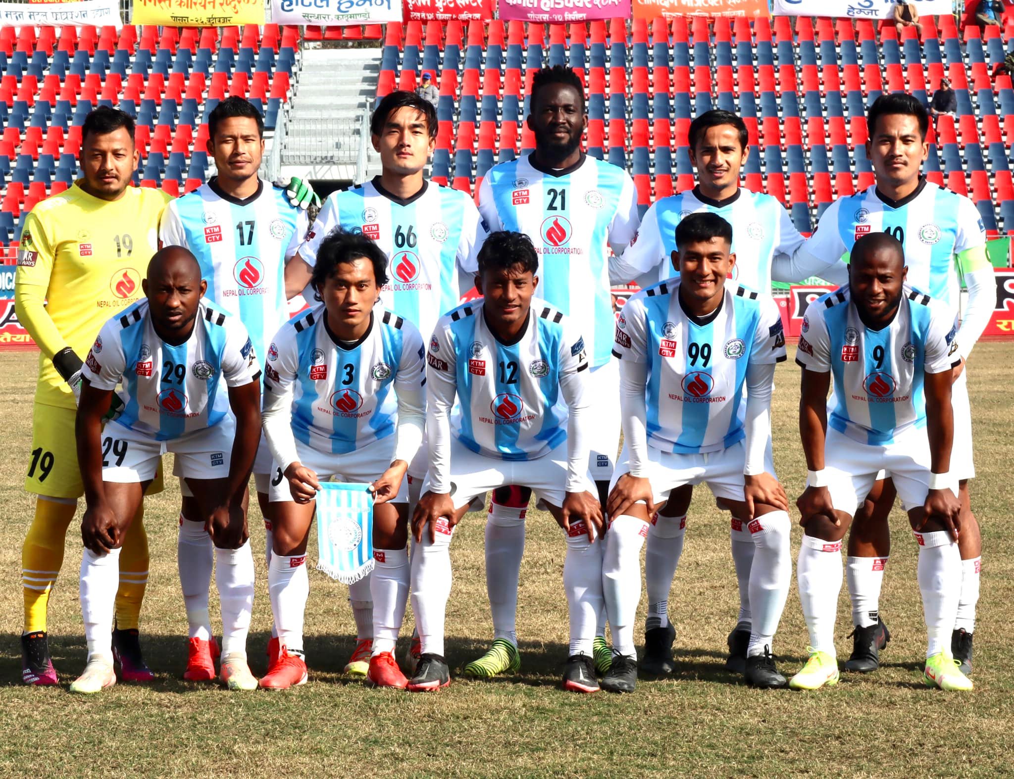 पोखरा रंगशालामा आइतबार भएको खेलमा मनाङलाई जिताउन रुपेश केसी र विदेशी खेलाडी आफिज ओलावाले १–१ गोल गरे ।