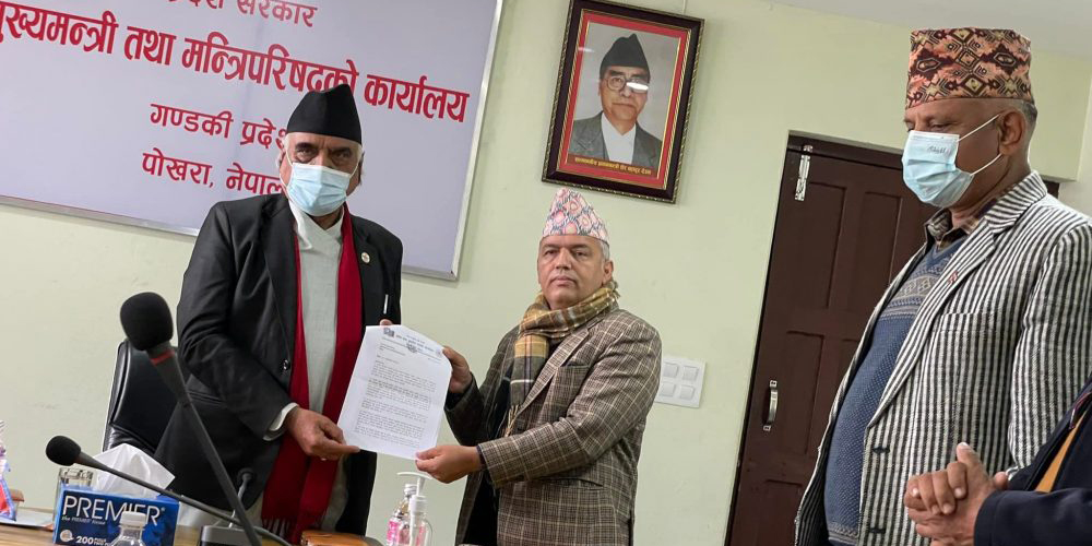 मुख्यमन्त्रीको कार्यालय पुगेर एमाले प्रदेश संसदीय दलका प्रमुख सचेतक मायानाथ अधिकारीले ध्यानाकर्षण पत्र हस्तान्तरण गरेका थिए । नेपाली नेतृत्वमा गण्डकी प्रदेशमा सरकार सञ्चालन भएको ९ महिना पुग्दैगर्दा एमालेले दोस्रो पटक ध्यानाकर्षण पत्र बुझाएको हो ।