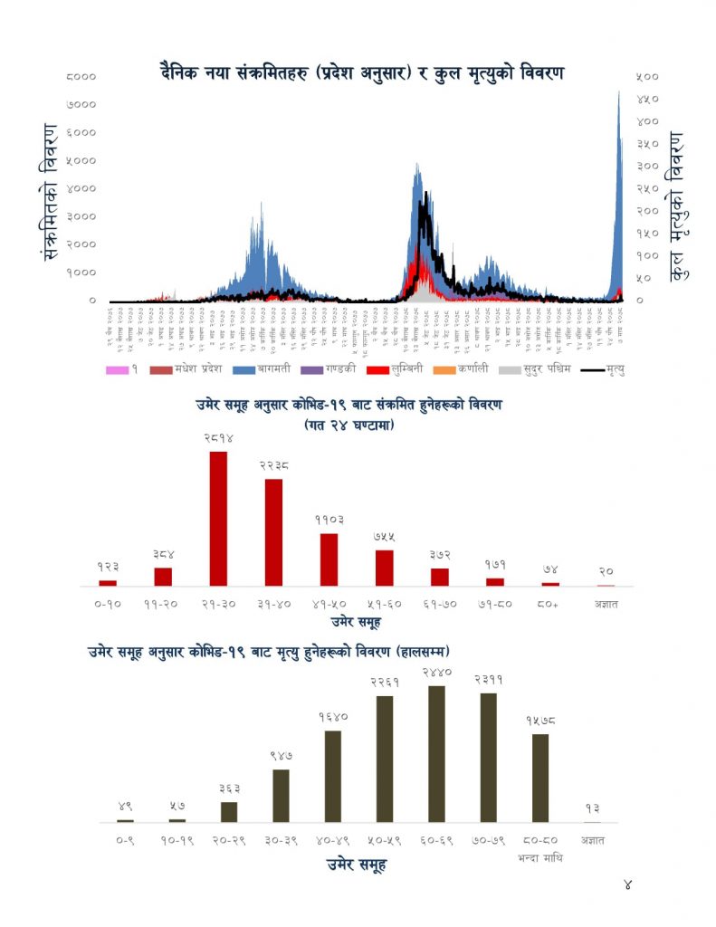 पछिल्लो २४ घण्टामा कोरोनाबाट ४ जनाको मृत्यु भएको मन्त्रालयले जानकारी दिएको छ । नेपालमा कोरोनाबाट अहिलेसम्म मृत्यु हुनेको संख्या ११ हजार ६५९ पुगेको छ ।