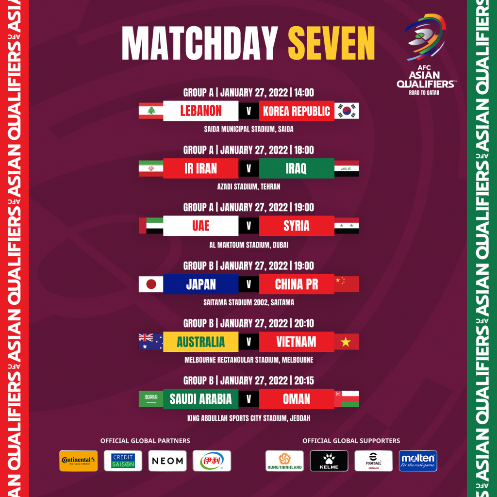 समूह ‘बी’ बाट जापान र चीनले प्रतिस्पर्धा गर्दा अष्ट्रेलियाले भियतनामलाई आतिथ्य प्रदान गर्नेछ । यता ओमान भने अपराजित साउदी अरबिया भ्रमणमा निस्कने छ ।
