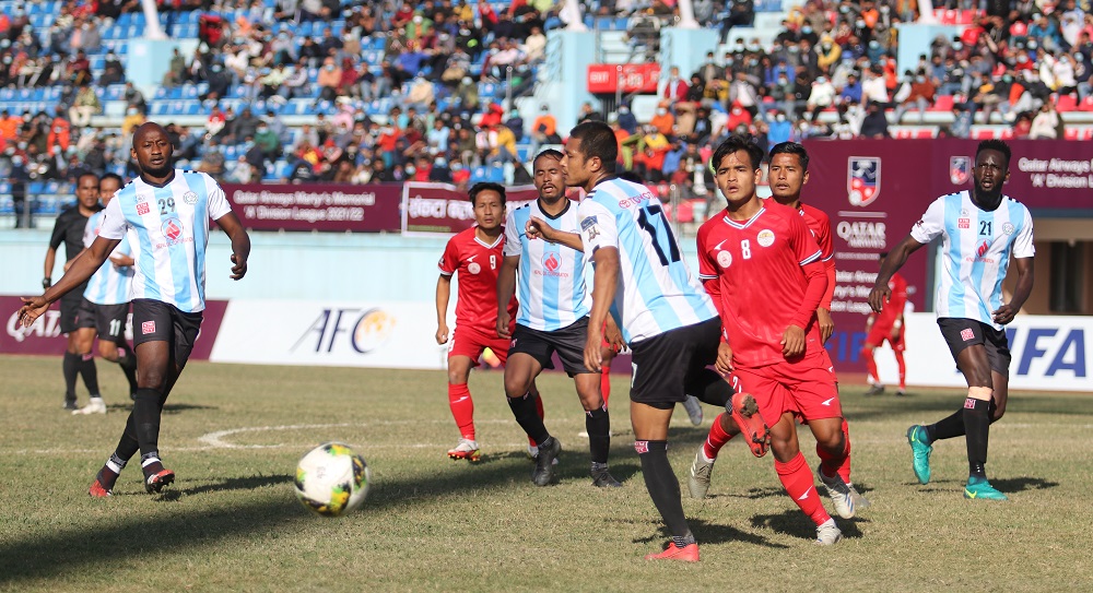 त्रिपुरेश्वरस्थित दशरथ रंगशालामा सम्पन्न खेलमा एपीएफको जितमा आशिष लामा, मनिकुमार लामा र नवीन लामाले समान एक गोल गरे । जितसँगै एपीएफको रेलिगेसन डर अन्त्य भएको छ ।