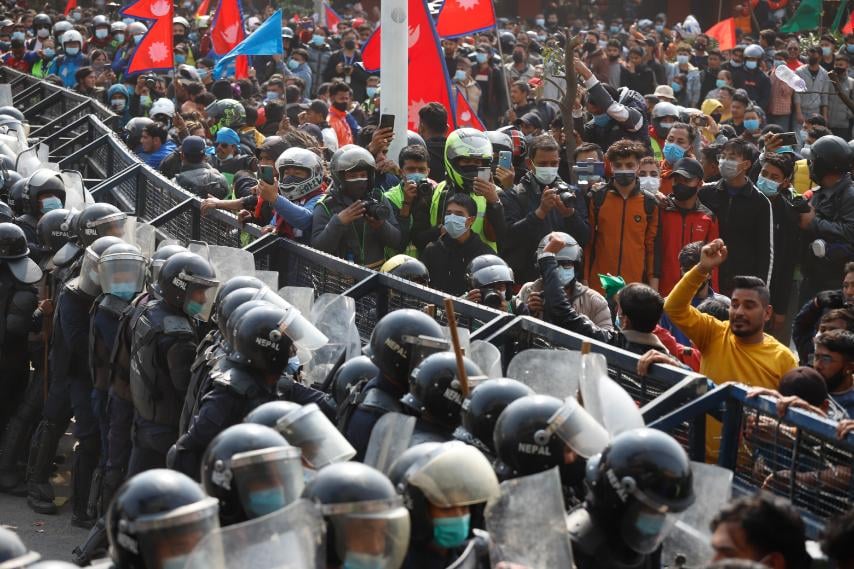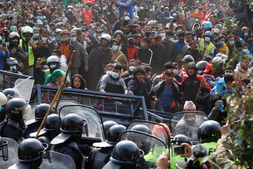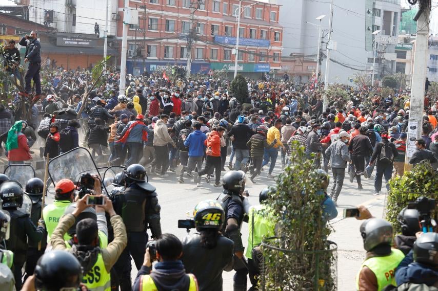 काठमाडौं । एमसीसीको विपक्षमा प्रदर्शनमा उत्रिएका र सुरक्षाकर्मीबीचको झडपले नयाँ बानेश्वरलाई ‘युद्ध मैदान’को झल्को दिएको छ ।