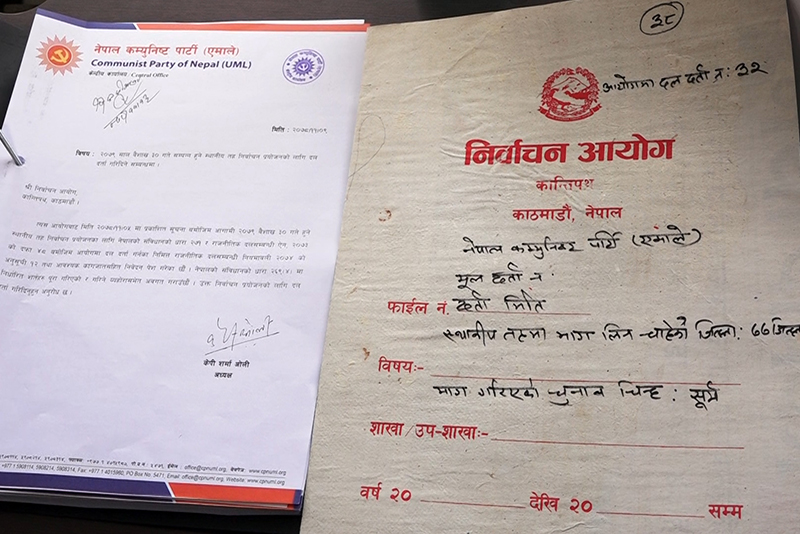 काठमाडौं।नेकपा (एमाले)ले स्थानीय तह निर्वाचन प्रयोजनका लागि निर्वाचन आयोगमा दल दर्ता गराएको छ।