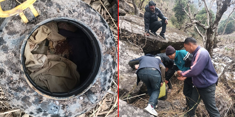 वडाध्यक्ष जीवन केसीका अनुसार हिजो दिउँसो बाख्रा चराउन जङ्गलमा गएका स्थानीयले शङ्कास्पद वस्तु देखेपछि वडा कार्यालयमा जानकारी गराएका थिए ।
