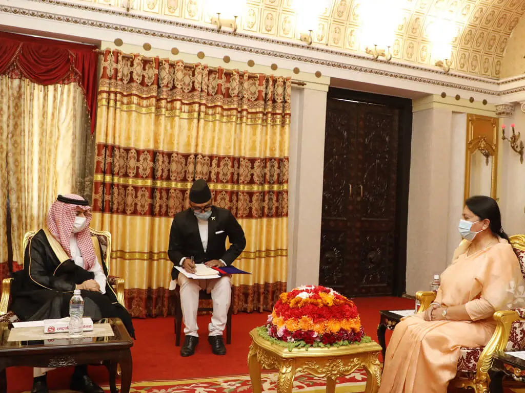 काठमाडौं । नेपाल भ्रमणमा आएका साउदी अरबका राजकुमार एवं विदेशीमन्त्री फैजल बिन फरहान अल साउदले राष्ट्रपति विद्यादेवी भण्डारीसमक्ष शिष्टाचार भेट गरेका छन् ।