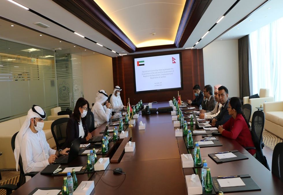 काठमाडाैं । नेपाल-युएई संयुक्त समितिको दोस्रो बैठक संयुक्त अरब इमिरेट्सको राजधानी आबुधावीमा सम्पन्न भएको छ । आबुधावीस्थित संयुक्त अरब इमिरेट्सको मानव संशाधन मन्त्रालयमा भएको बैठकमा सन् २०१९ मा भएको संयुक्त समितिको पहिलो बैठकका निर्णय कार्यान्वयनको अवस्थाबारे समीक्षा भएकाे थियाे ।