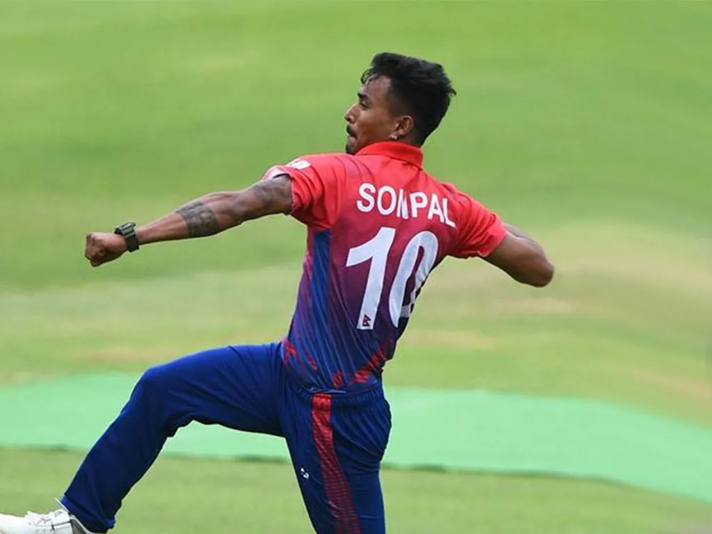 चौथो ओभरमा ओपनर चिराग सुरीलाई ६ रनको व्यक्तिगत स्कोरमा बाउन्सर बलमार्फत विकेटकिपर आरिफ शेखको हातबाट क्याच आउट गराएका सोमपालले ५.१ ओभरमा भृत्य अरविन्दलाई ३ रनको व्यक्तिगत स्कोरमा एलबीडब्ल्यू धरापमा पारे । ११ औं ओभरको तेस्रो बलमा करण केसीले आसिफ खानलाई आउट गराएका हुन् ।