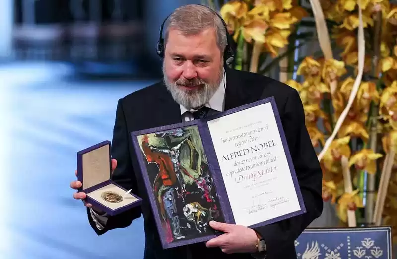 नोभाया गजेटाका सह-संस्थापक मुराटोभले रूसमा अभिव्यक्ति स्वतन्त्रताको अथक रक्षाको लागि गत अक्टोबरमा नोबेल शान्ति पुरस्कार जितेका थिए ।
