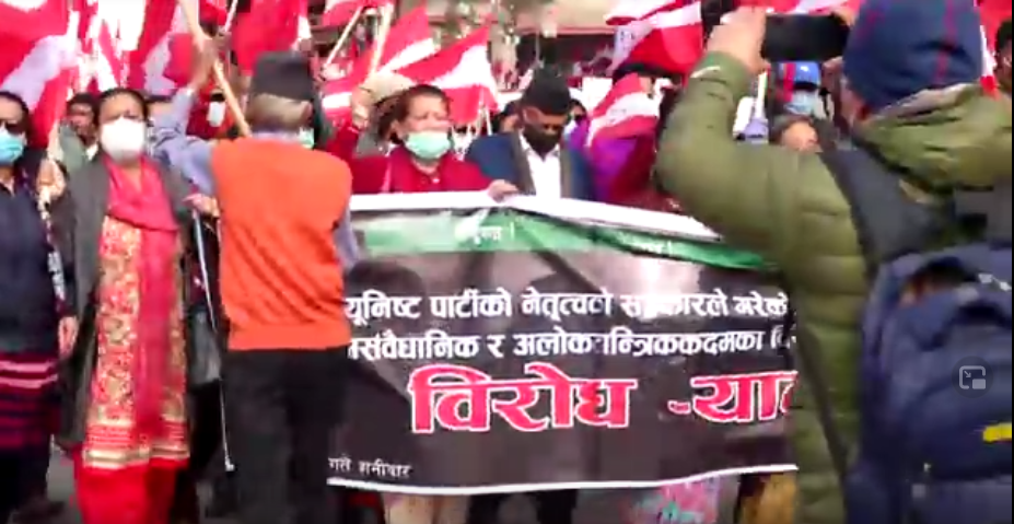 ‘हिजो शेखर दाइको सचिवालयमा हाम्रो बैठक थियो । सो बैठकले सभापतिको सो एकलौटी निर्णयप्रति असहमति जनाउँदै शान्तिपूर्ण विरोध प्रदर्शन गर्न लागेको हौं,’ मगरले भनिन् । उनका अनुसार उक्त बैठकमा कोइराला, चन्द्र भण्डारी, गुरुराज घिमिरे, केशवसिंह, प्रतिमा गौतम, मनोजमणि आचार्य, गोविन्दराज पोखरेललगायत नेविसंघ र तरुण दलका पूर्वपदाधिकारीहरूको उपस्थिति थियो ।