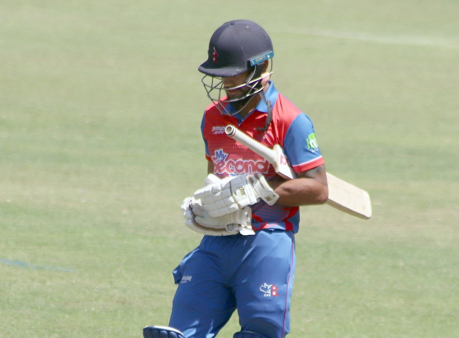 नेपालका ओपनर कुशल भुर्तेल गोल्डेन रोयल आउट भएका छन् । पहिलो ओभरको पहिलो बल लिएर आएका अलिन नावले उनलाई क्याच आउट गराएका हुन् । साथै अनिलकुमार शाहसमेत एक रनमा क्याच आउट भएका छन् । उनलाई पनि अलिले नै सिमोन अटाइबाट क्याच आउट गर्दै पेभेलियन फर्काएका हुन् ।