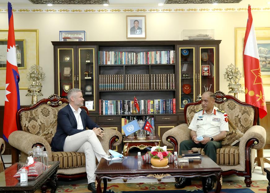 काठमाडौं।संयुक्त राष्ट्रसंघका आवासीय संयोजक रिचार्ड होवार्डले प्रधानसेनापति प्रभुराम शर्मासँग शिष्टाचार भेट गरेका छन् ।