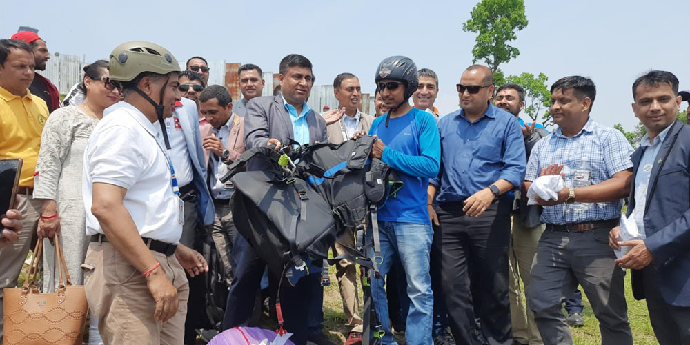 पोखरा । प्याराग्लाइडिङ व्यवसायीको छाता संस्था नेपाल हवाई खेलकुद संस्था (ना)को आयोजनामा पोखरामा २० औँ नेपाल खुला प्याराग्लाइडिङ प्रतियोगिता सुरु भएको छ । पोखरा महानगरपालिका–१८ सराङकोटमा गण्डकी प्रदेशका प्रदेशसभा सदस्य राजीव पहारीले प्यारा पाइलट शिव थापालाई ग्लाइडर हस्तान्तरण गरेर प्रतियोगिताको उद्घाटन गरेका हुन् ।