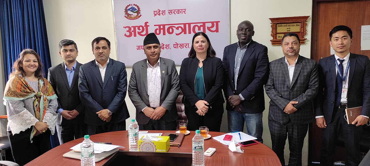 पोखरा।विश्व बैंकअन्तर्गत अन्तर्राष्ट्रिय वित्त निगमको एक टोलीले गण्डकीका अर्थमन्त्री रामजी बरालसँग भेट गरेको छ । निगमका म्यानेजर सेल्मा, आईएफसी नेपाल प्रमुख बाबाकार, अप्रेसन अफिसर असिम नेपाल, कन्ट्री अफिसर सन्तोष पाण्डे र अप्रेसन अफिसर रेहाना रब्बानीको टोलीले गण्डकीमा लगानी भित्र्याउने विषयमा छलफल गरेका हुन् ।