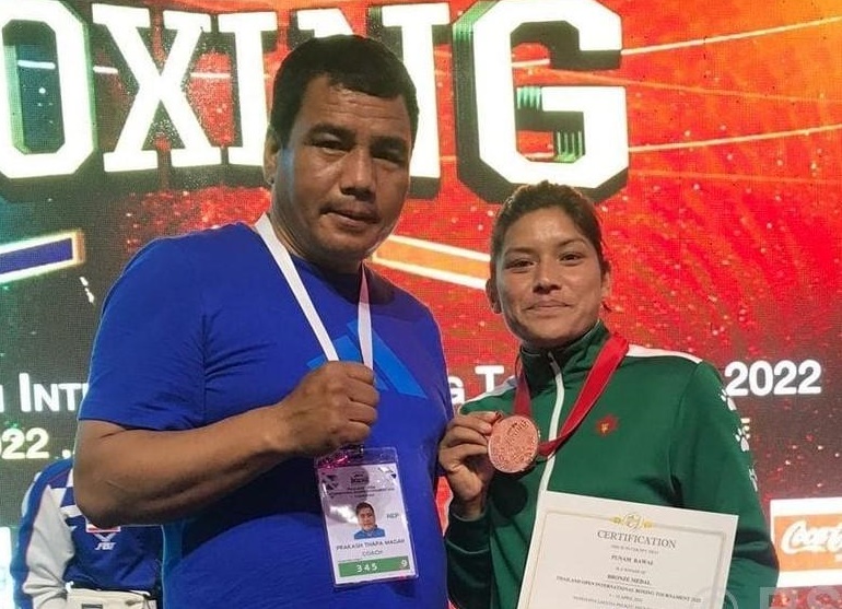 काठमाडौँ । थाइल्याण्डको फुकेटमा सम्पन्न अन्तर्राष्ट्रिय खुला बक्सिङमा नेपालले कास्य पदक प्राप्त गरेको छ । उक्त प्रतियोगितामा महिला ६० किलो तौल समूहमा नेपालकी पुनम रावलले कास्य पदक प्राप्त गर्न सफल भएकी हुन् ।