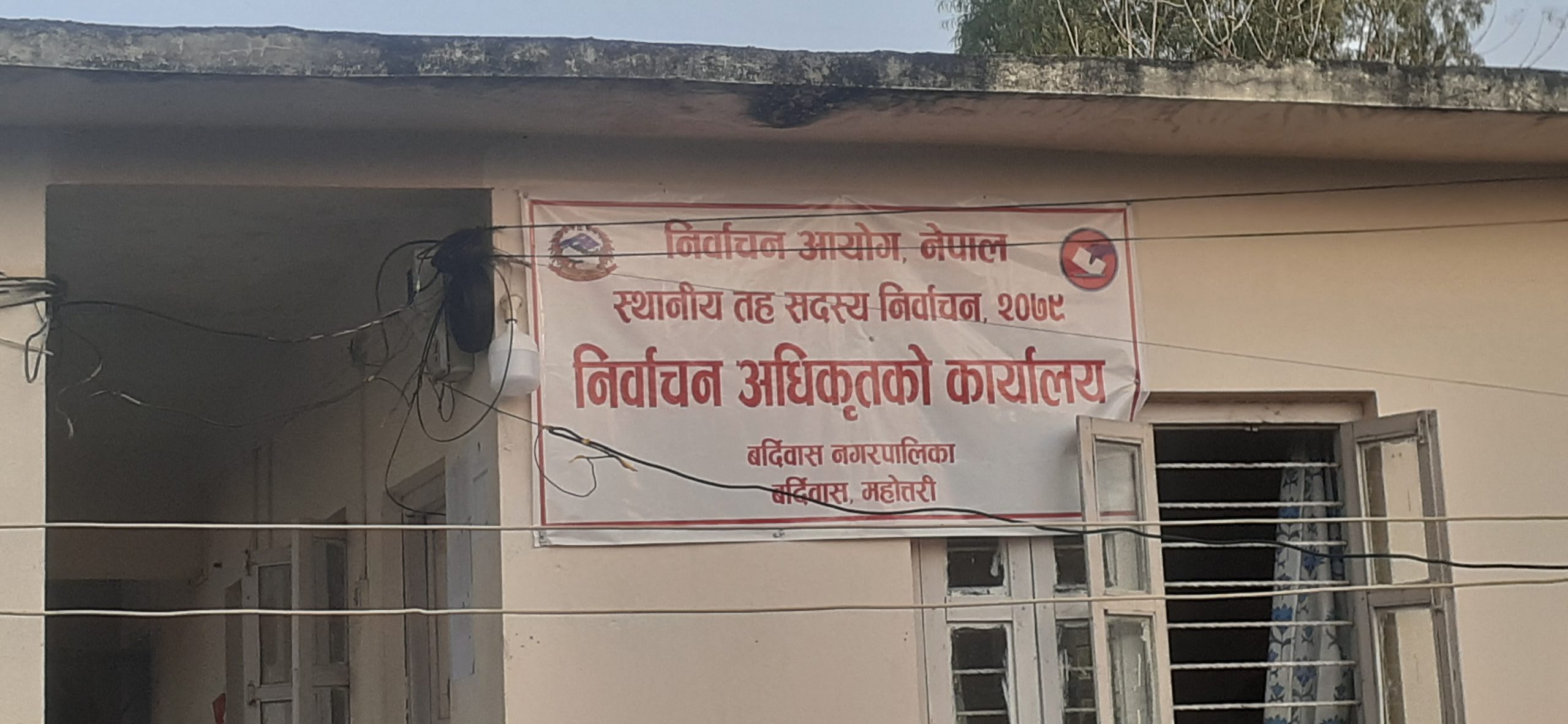 उम्मेदवार मनोनयन दर्ता गर्न बर्दिबास नगरपालिकाको निर्वाचन कार्यालयले २ दिनको समय राखेको छ। उम्मेदवार मनोनयन दर्ता गर्न ११ वैशाखदेखि १२ वैशाखसम्म बिहान १० बजेदेखी बेलुका ५ बजेसम्म खुला गरिएको छ ।
