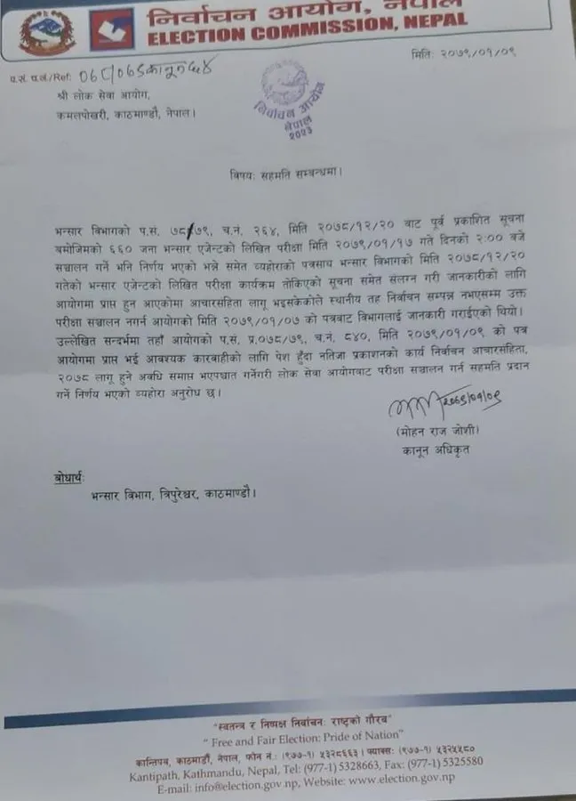 निर्वाचन आयोगले परीक्षाफल निर्वाचन आचार संहिता लागु हुने समय सकिएपछि प्रकाशित गर्ने गरी परीक्षा गर्न सहमति दिएपछि ६६० भन्सार एजेन्टको परीक्षा वैशाख १७ मै हुने भएको हो।