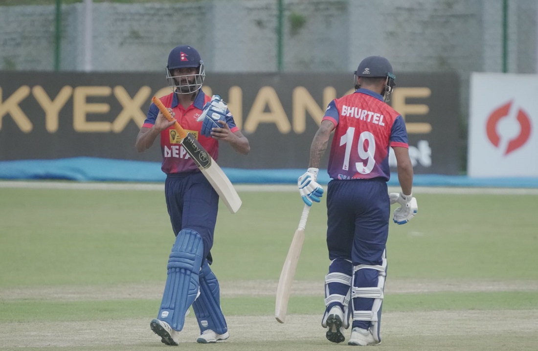 नेपालका लागि ओपनर आसिफ शेखले उत्कृष्ट ब्याटिङ गर्दै अर्धशतकिय पारी खेले । उनले ५४ बलमा १३ चौका र १ छक्काको मद्धतमा सर्वाधिक ८७ रन जोडे । अर्का ओपनर कुशल भुर्तेलले ३४ रनको योगदान गरे । तेस्रो नम्बरमा ब्याटिङ गर्न आएका बसिर अहमदले १० रन बनाउँदै दीपेन्द्रसिंह ऐरी ० रन बनाउँदै नट आउट रहे ।