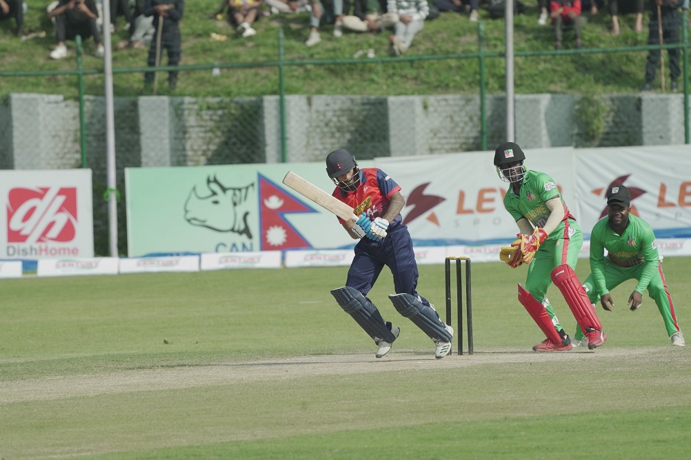 नेपालका लागि किशोर महत्तोले एक्लैले पाँच विकेट लिए । सोमपाल कामीले दुई विकेट लिँदा करन केसी र दीपेन्द्रसिंह ऐरीले एकएक विकेट लिए ।