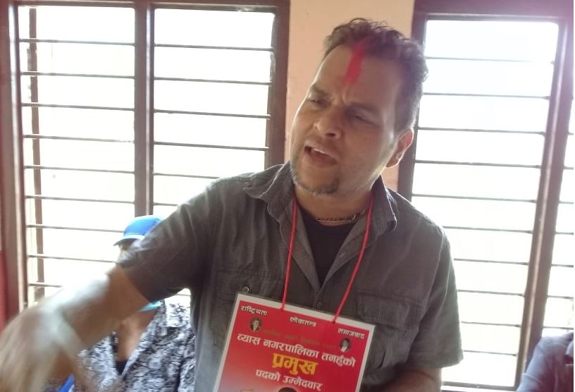 स्वतन्त्र उम्मेदवार जोशी कांग्रेसका असन्तुष्ट नेता गोविन्दराज जोशीका छोरा हुन्। जोशीलाई नेकपा एमालेले समर्थन गरेको छ।न्यौपाने भने व्यास नगरपालिकाका निवर्तमान मेयर समेत हुन्। यो नगरपालिका कांग्रेस बरिष्ठ नेता रामचन्द्र पौडेलको गृहपालिका पनि हो।